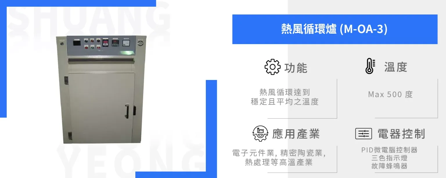 首頁 > 熱處理設備 > 箱型爐系列 > 熱風循環爐 (M-OA-3)