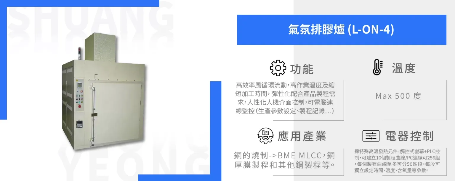 (1) 功能:高效率風循環流動高作業溫度及縮短加工時間彈性化配合產品製程需求