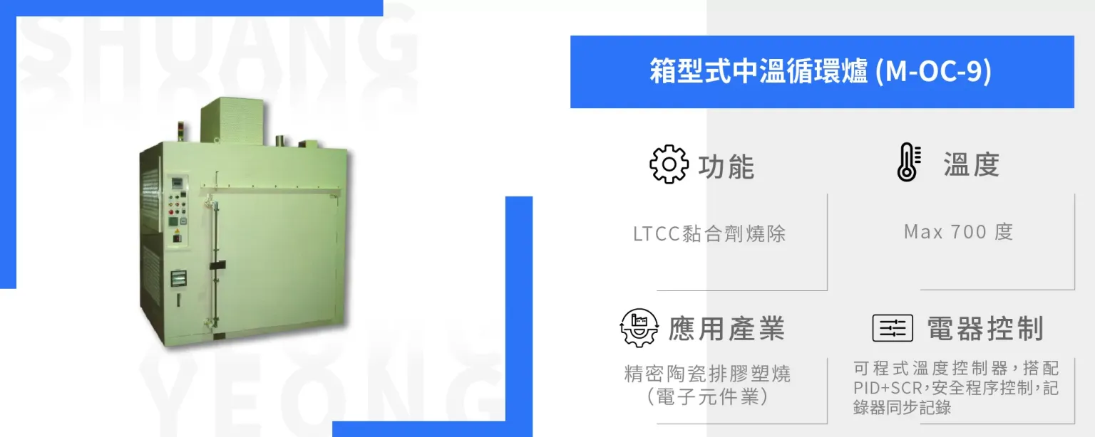 首頁 > 熱處理設備 > 箱型爐系列 > 箱型式中溫循環爐 (M-OC-9)