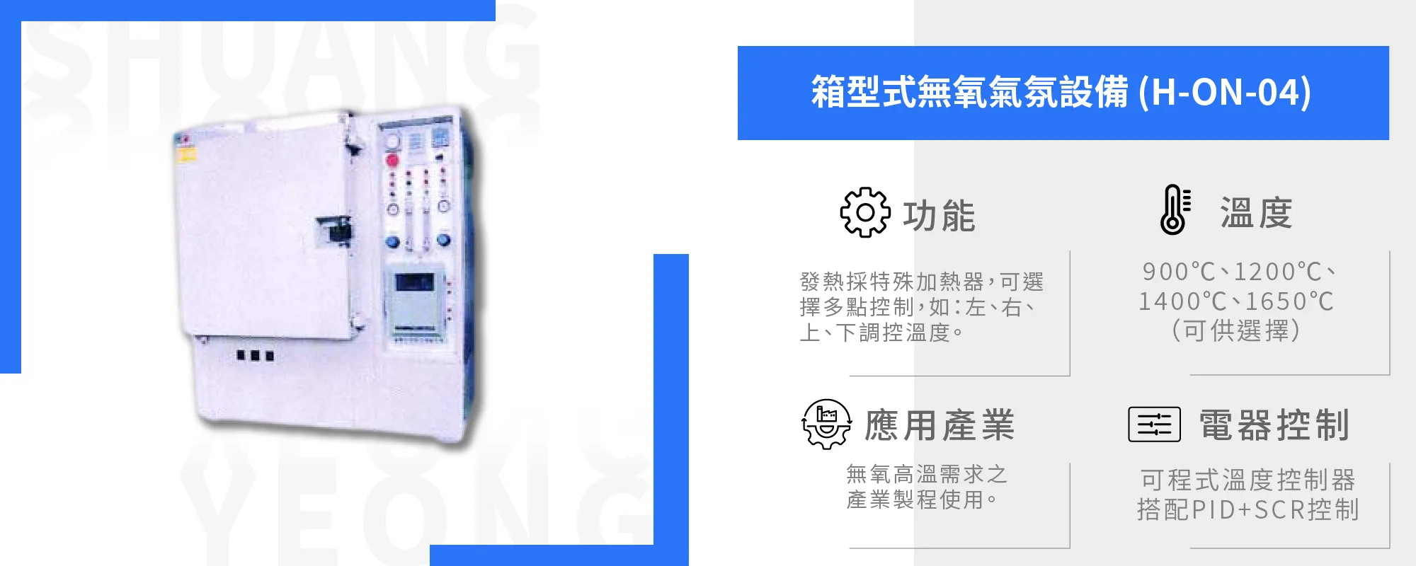 首頁 > 熱處理設備 > 箱型爐系列 > 箱型式無氧氣氛設備 (H-ON-04)